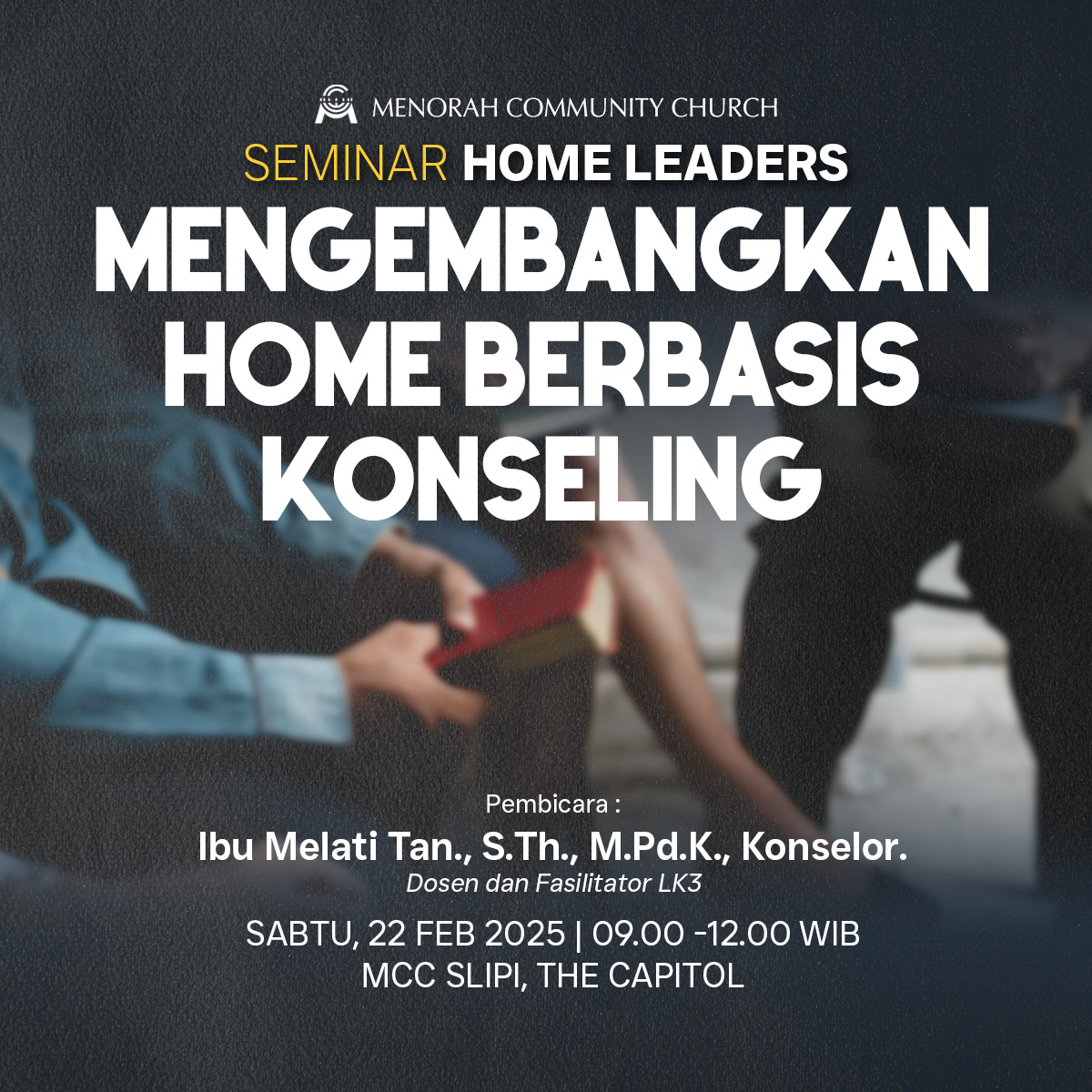 MCC Slipi The Capitol Building 3rd floor | Jl. Letjen S. Parman, Kav. 73, Slipi, Jakarta Barat., JakartaBergabunglah bersama kami dalam acara Revival Prayer yang akan diadakan pada: 🗓 Tanggal: Sabtu, 1 Maret 2025 🕙 Waktu: Jam 10.00 WIB 📍 Tempat: MCC Slipi 👤 Pembicara: Ps. Natanael Mari kita bersatu dalam doa dan pujian, memohon pembaruan dan kuasa Tuhan dalam hidup kita. Jangan lewatkan kesempatan ini untuk mengalami hadirat-Nya! 🙏 Ayo, ajak […]