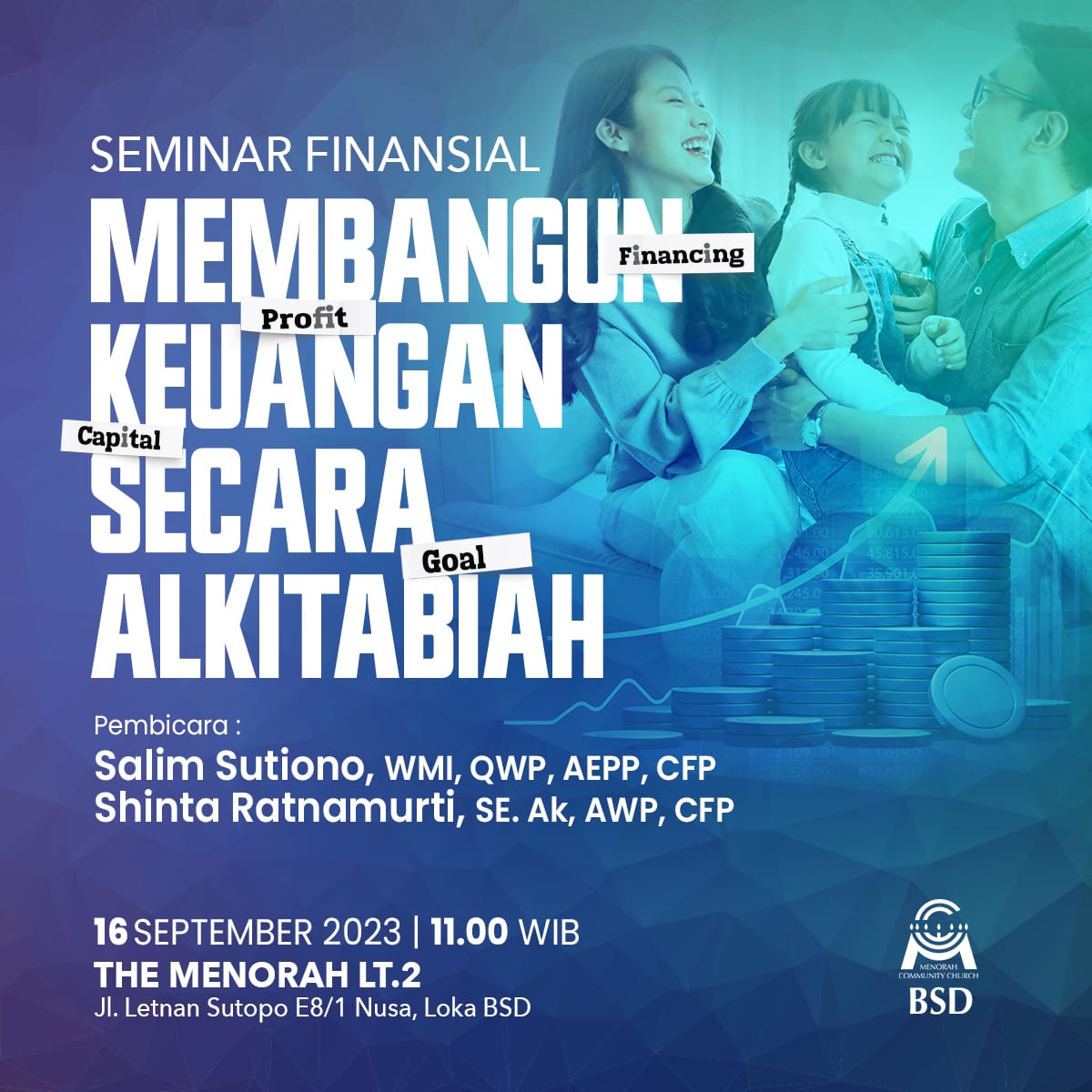 Sulit mengelola keuangan? Tidak bisa menabung? Penghasilan tidak cukup? Ingin membantu orang lain yang sedang kesulitan keuangan? Ayo hadir di Seminar Keuangan ini dan temukan jawabannya yang sesuai dengan Alkitab. Ajaklah keluarga dan teman Anda untuk bersama diberkati. Tuhan Yesus Memberkati π